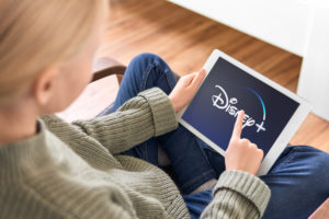 January 5, 2020, Kaliningrad, Russia. Young girl holding iPad in her hands with Disney Plus application on the screen.